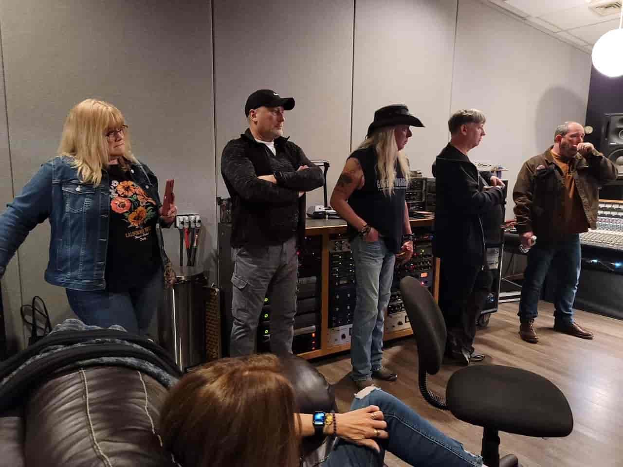 The group was shuttled to a recording studio, where they watched Ron record a new song.